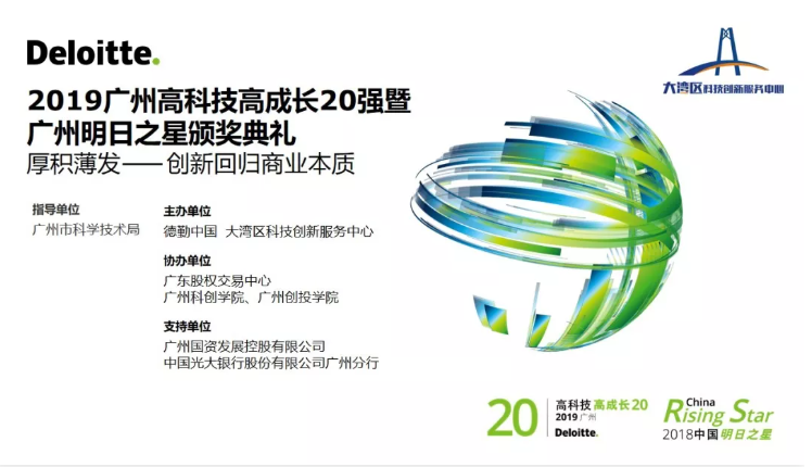 11月18日,星星之火在广州燎原! 广州市科学技术局、大湾区科技创新服务中心与德勤中国牵头主办——2019广州高科技高成长20强暨广州明日之星颁奖典礼圆满结束啦!